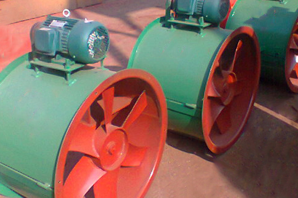 電動機安裝在風筒上部,有可調的電機座板支承電機,并能調節(jié)中心距。全部采用三角皮帶傳動。軸承箱固定在風筒中央密封的防護筒內(nèi)與介質隔離。